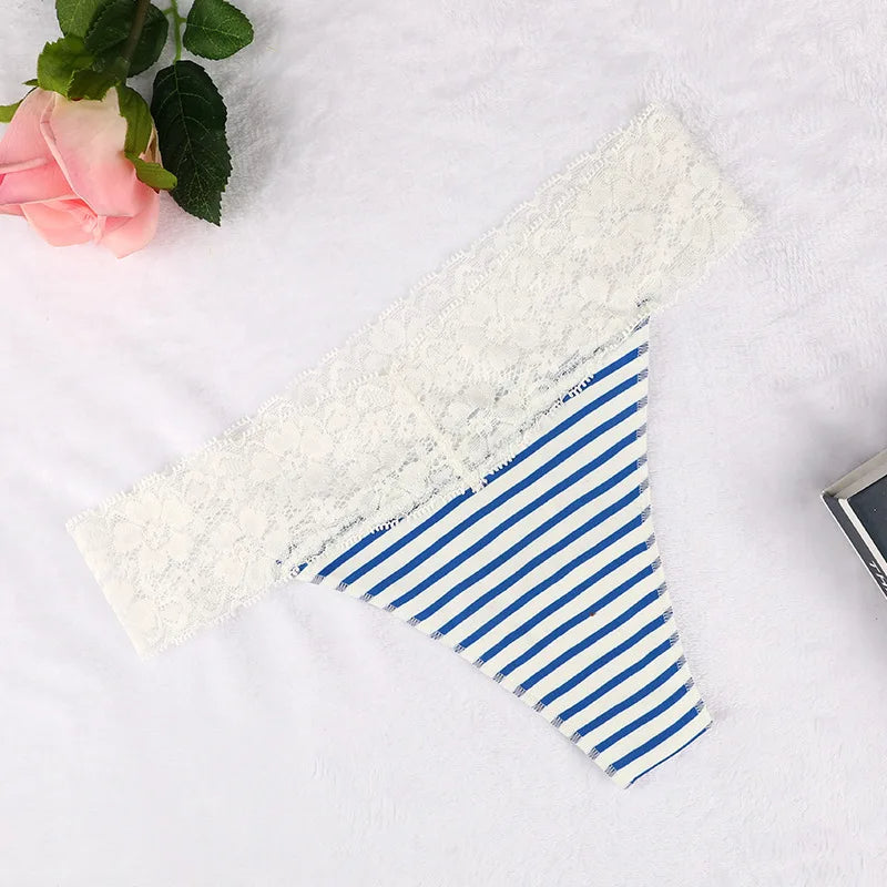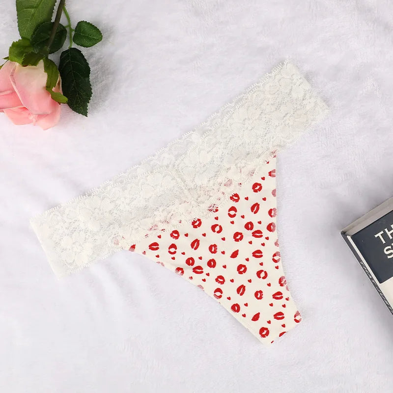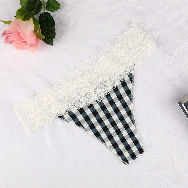 Discover the perfect blend of comfort and style with our Lace Trimmed Thong Panties. These panties feature a delicate lace waistband that adds a touch of elegance to your everyday wear. The soft, stretchy fabric ensures a snug fit, while the playful patterns bring a fun twist to your lingerie collection.