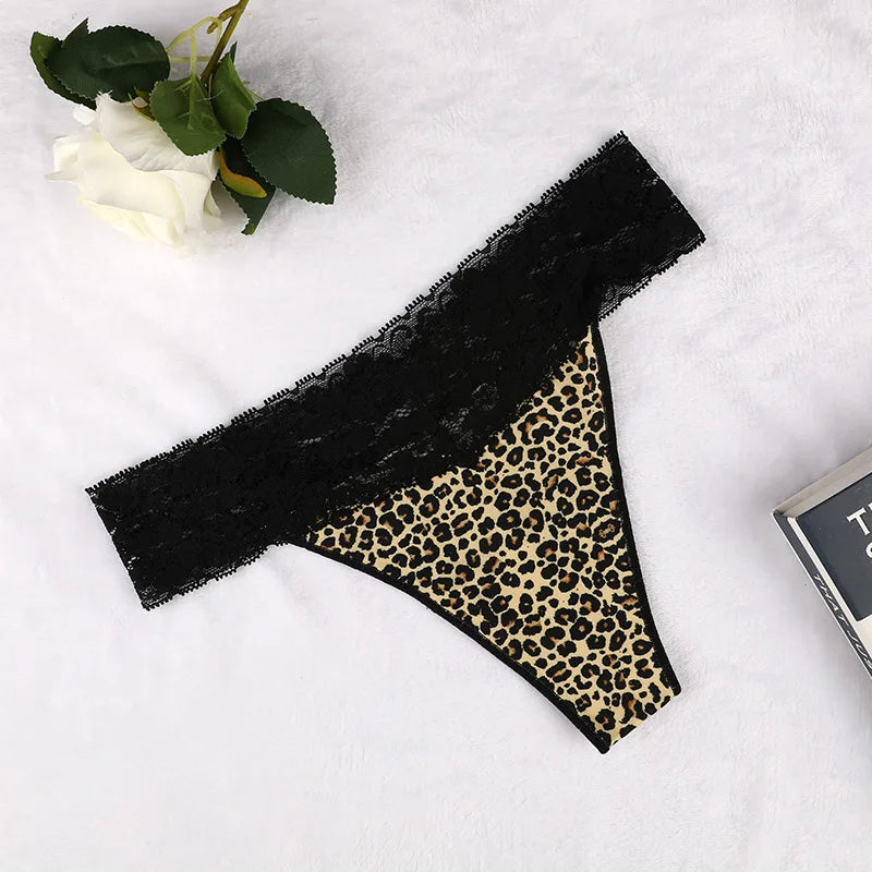Unleash your wild side with our Animal Print Lace Trim Thongs. These stylish thongs feature a bold animal print design complemented by delicate black lace trim, offering a perfect blend of comfort and allure.